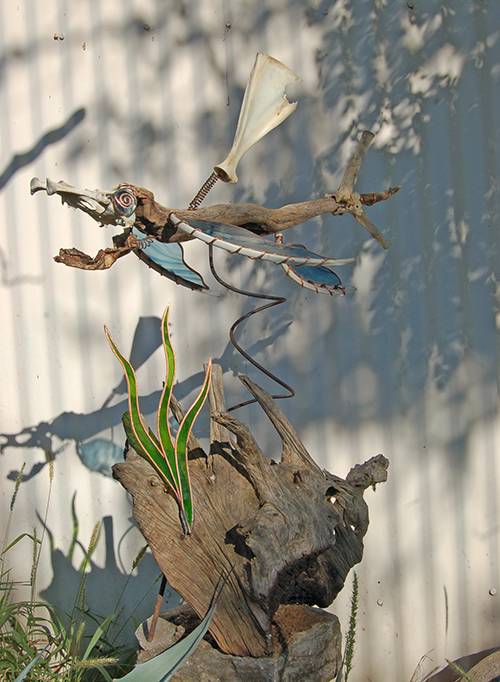 Multi-Media Garden Art Sculpture Approximate size 20"(h) x 18"(l) x 8"(d)